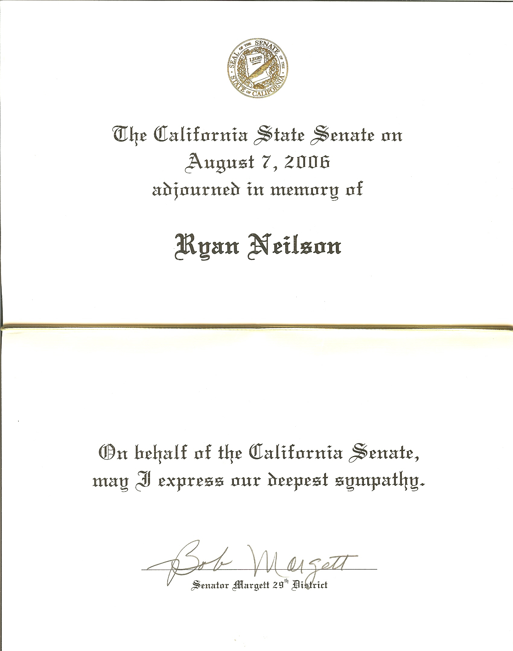Letter from California State Senate